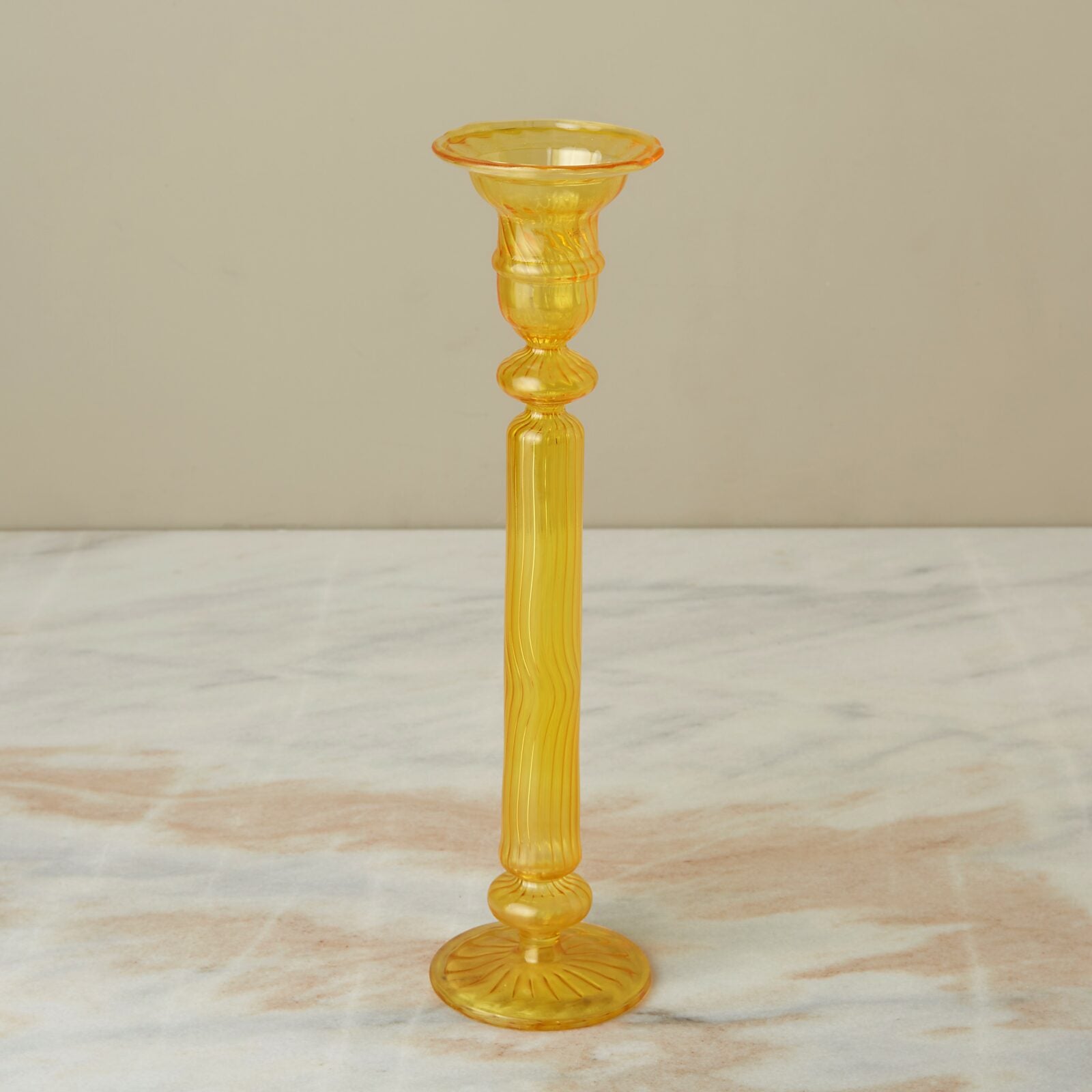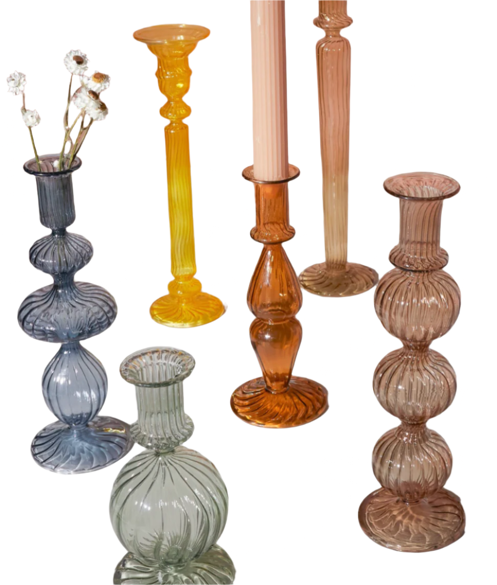 What a beautiful and unique way to illuminate any room with gorgeous glass candlestick holders. Made from delicate yet durable borosilicate glass, these ribbed taper holders come in a variety of earth-inspired colors, shapes and sizes that create a stunning display for any occasion.
