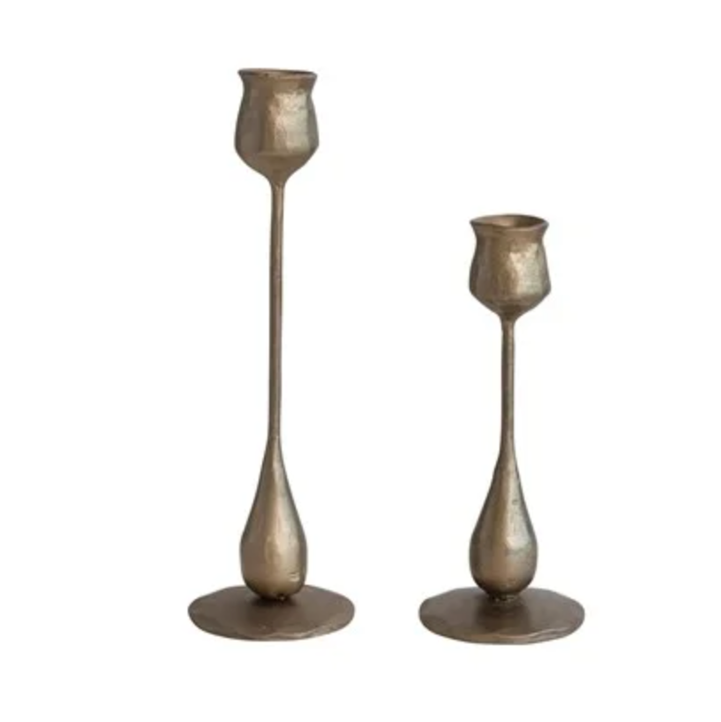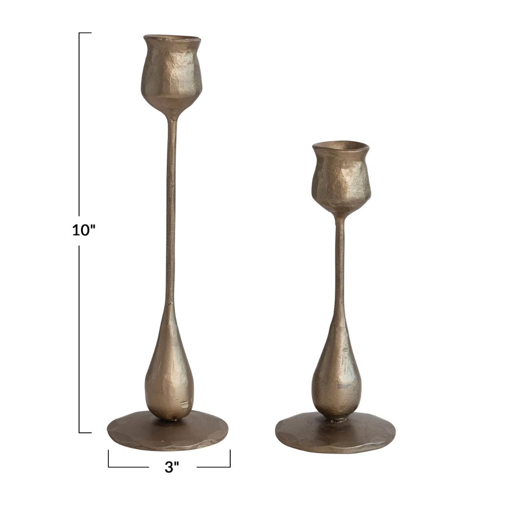 Hand Forged Antique Brass Taper Holders - Tulip