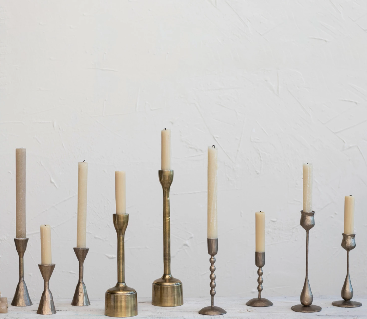 They look vintage...but they are not. Mix and match. Make a collection of brass candle holders for you table.