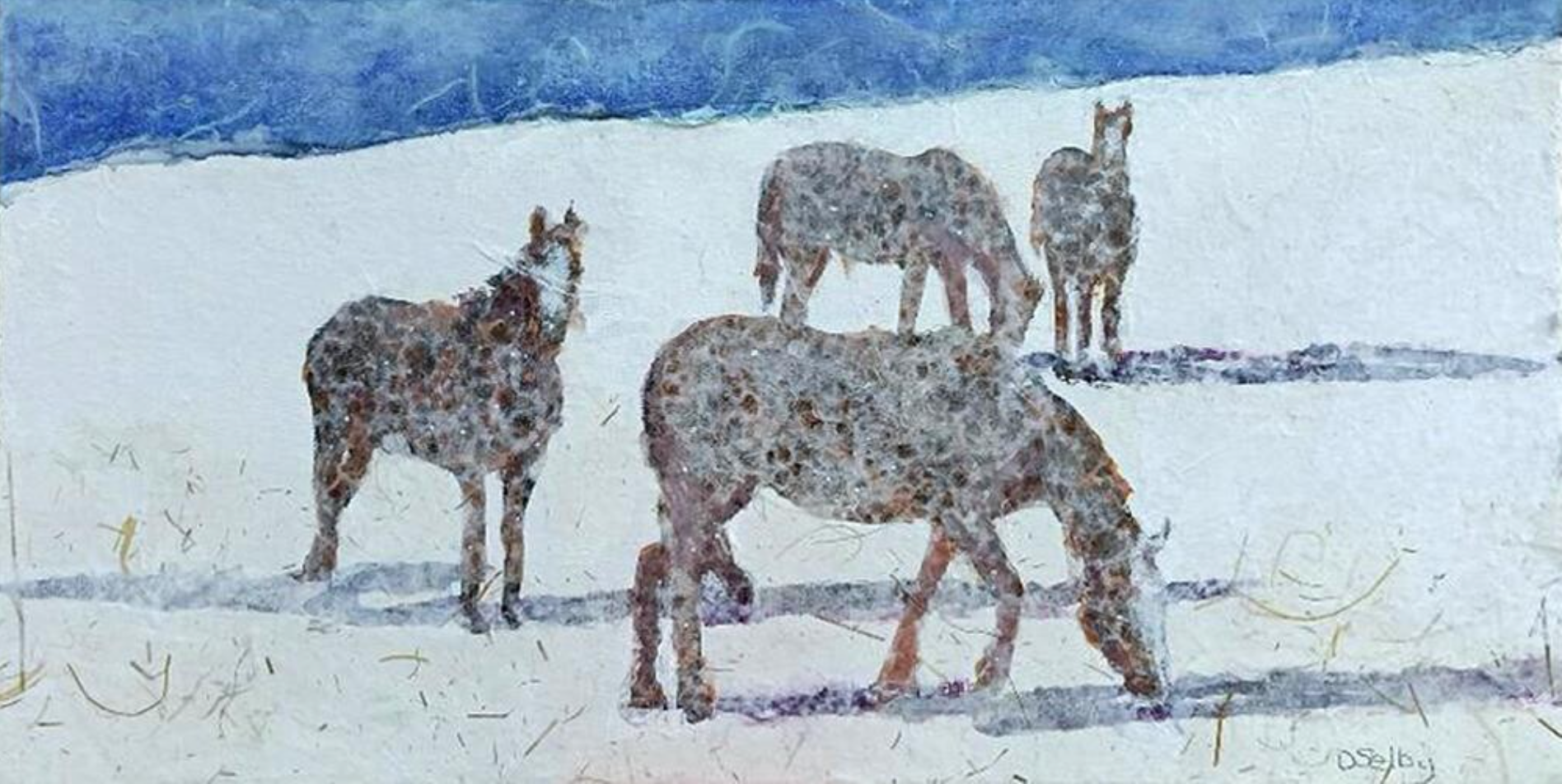 De Selby (Diane Edith, shortened) is a painter who has lived in the Bluegrass region of Kentucky for most of her life. After formal education (BA, MA: studio art), she continued her studies with research, painting, workshops, and life experience. She managed her own needlework publishing business that distributed her designs both domestically and internationally, sold the business and then lived in Wales where she welcomed many U.S. visitors to what her husband, Greg, referred to as "De's Make Your Own Darned Bed and Breakfast". During her time in Wales and for several years after, she freelanced for Lands' End, Better Homes and Gardens, The Longaberger Corporation, and special interest publications. She started painting full time while taking care of her dear demented mother Edith, and participates in LexArts projects including the Bourbon Barrel Walk, the Bookbench project, and the third Horsemania Project in Lexington, KY.