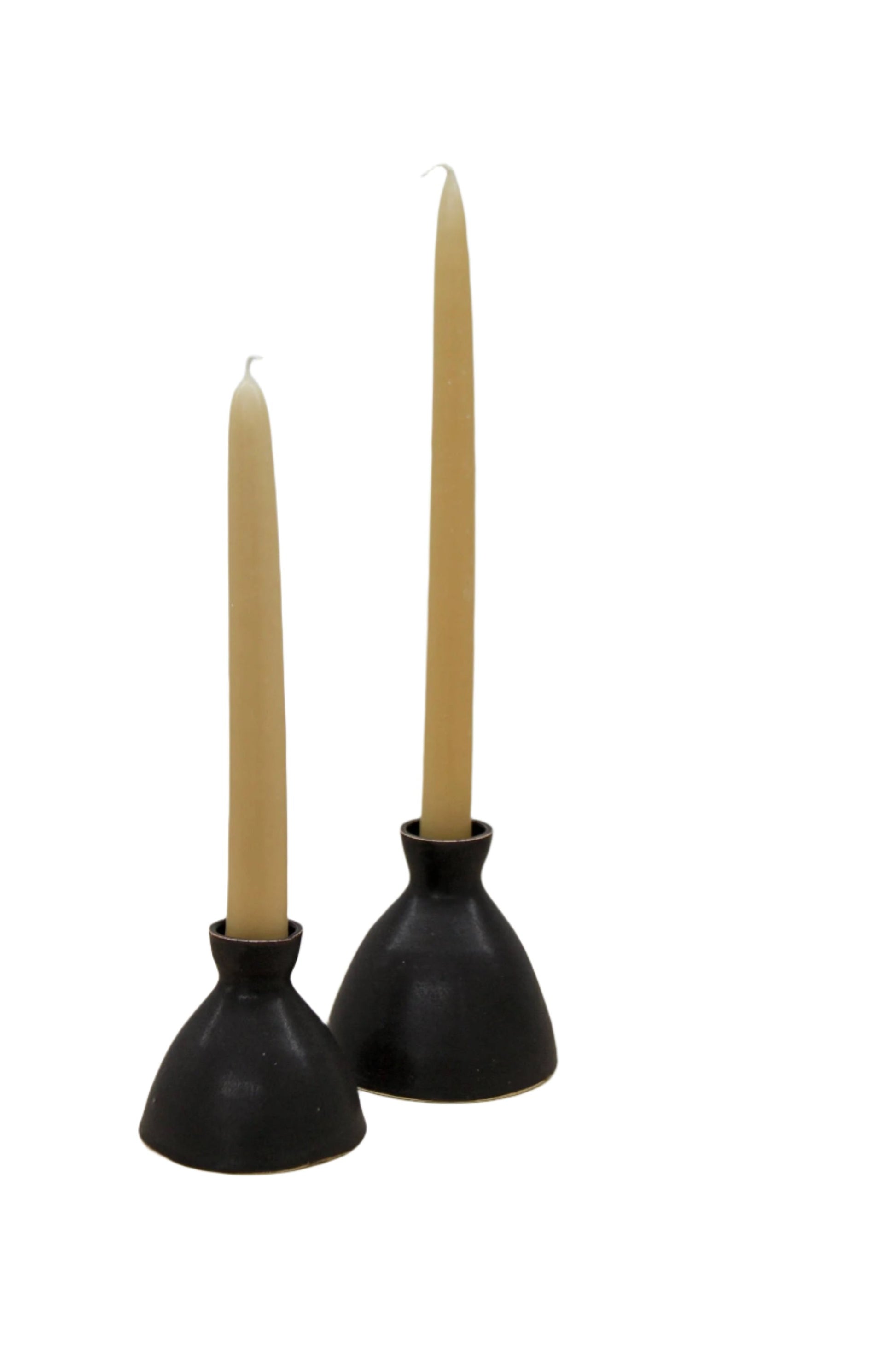 These pretty taper candle holders add to your home’s cozy decor. Made with a speckle clay and glazed in a black matte glaze. Sold individually!