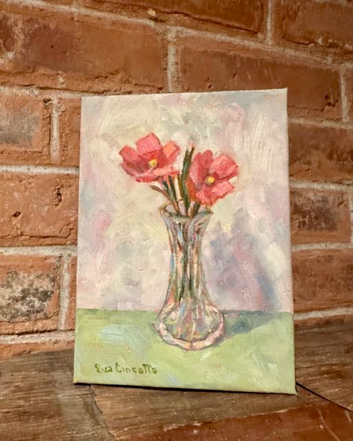 Sweet little work on chunky canvas - ready to hang or stand on shelf or table.