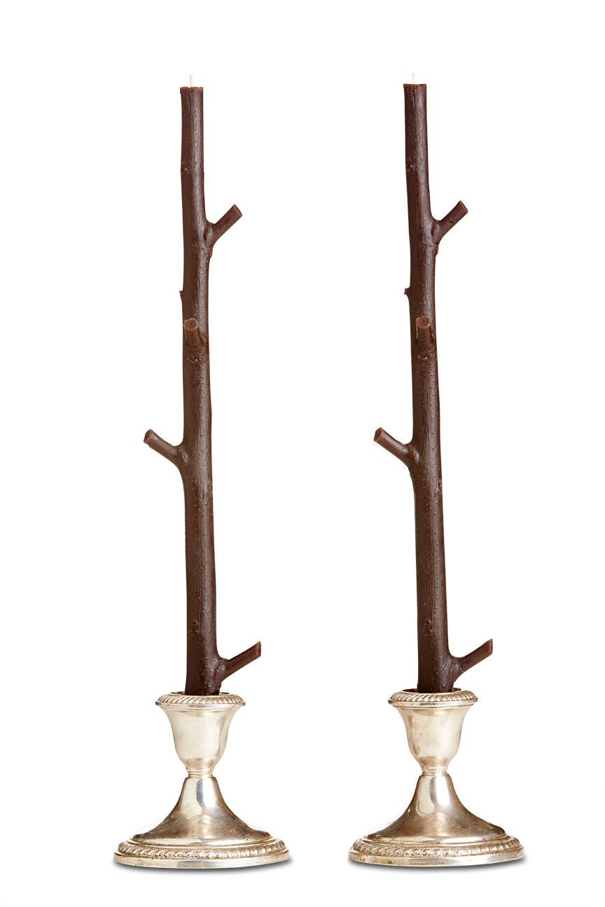These delicate taper candles are hand cast from real sticks and poured one at a time in the hills of North Carolina. Made of 100% beeswax, they are ephemeral works of art that are as beautiful in a pair of sterling silver candlesticks on a decadent holiday table as they are on a casual side table in a cozy study. Sold as a pair, they are the perfect hostess gift.