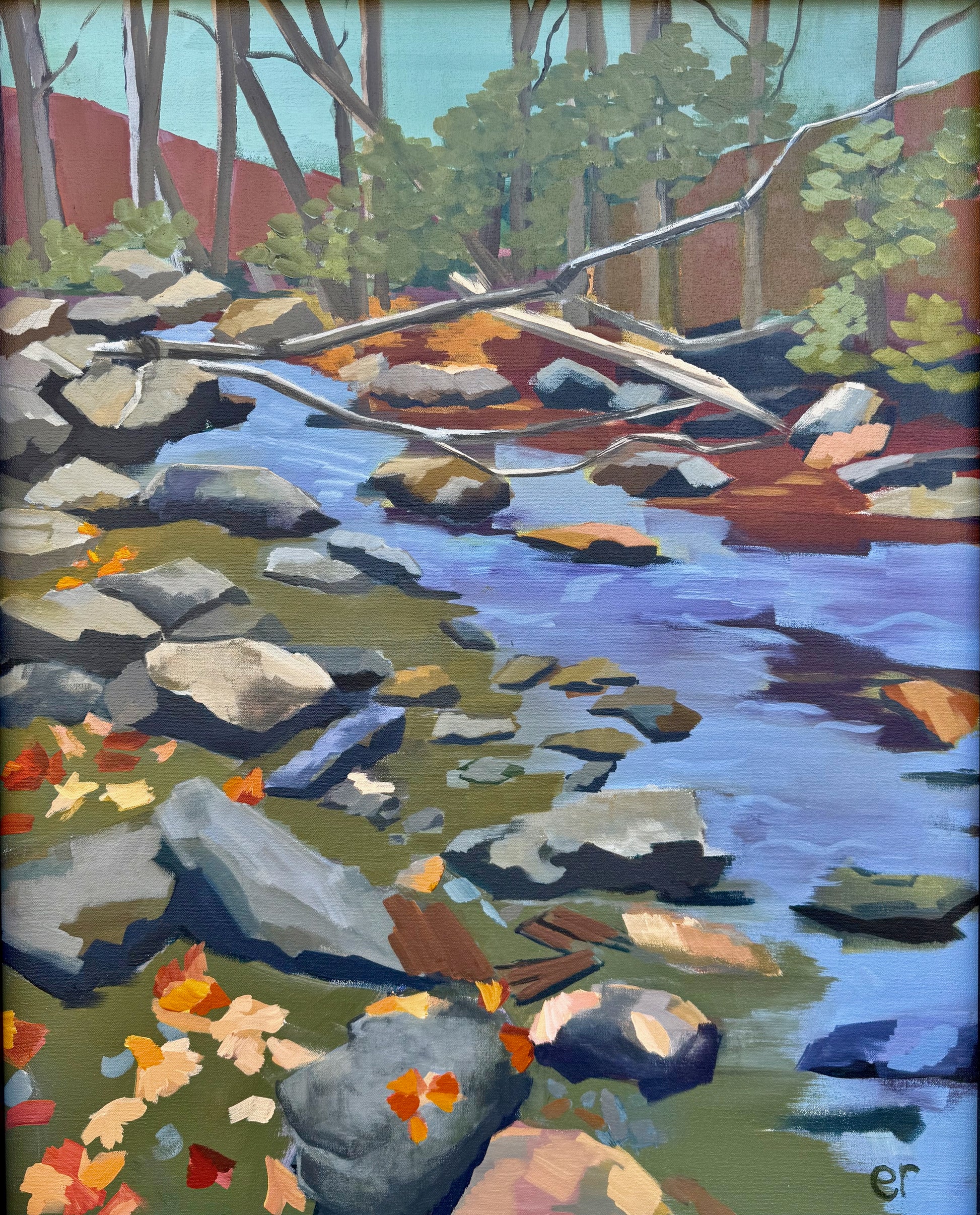 Elizabeth Ricketson, a Vermont-based painter, studied figure drawing at the Rhode Island School of Design, where she developed a deep understanding of form and movement that continues to inform her work. In recent years, she has turned her focus to painting Vermont’s rural landscapes and barns, exploring how light, color, and atmosphere shape a sense of place. Embracing abstract expressionism, she marries abstraction with representational themes, using unexpected color choices to reimagine the familiar. Each painting often begins with an acrylic wash, layered and manipulated with brushes, paper towels, and her hands to achieve depth and emotion. Working primarily in acrylic and oil, Elizabeth is an award-winning artist and active member of numerous New England art associations. She lives and paints in South Pomfret, Vermont, where she also teaches contemporary painting.