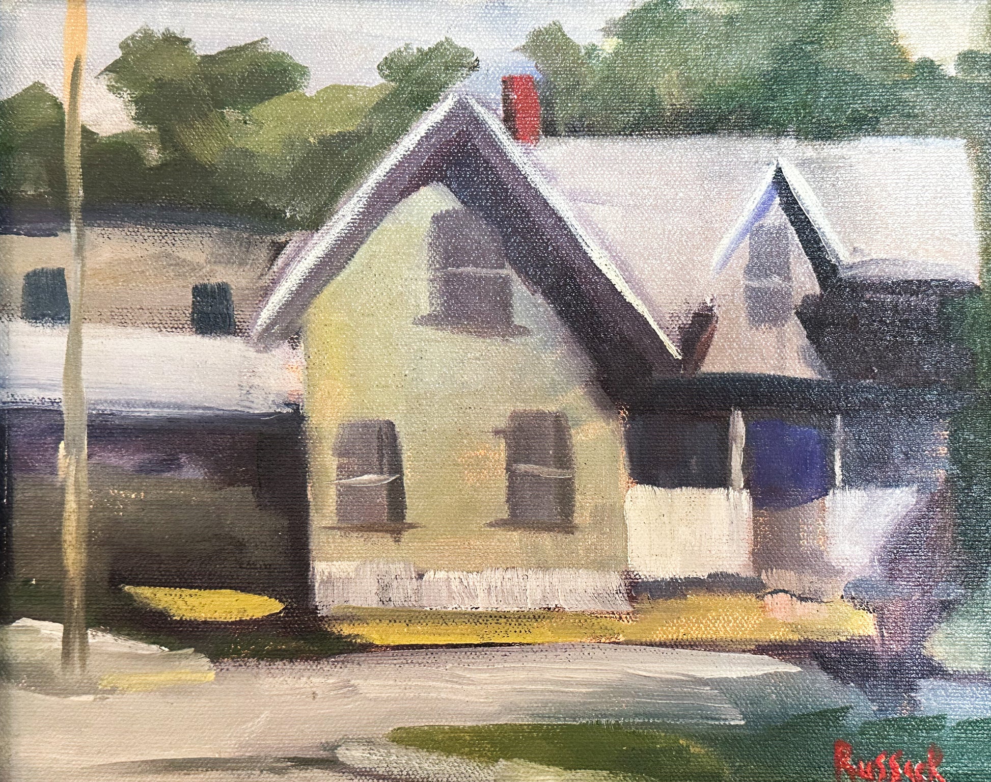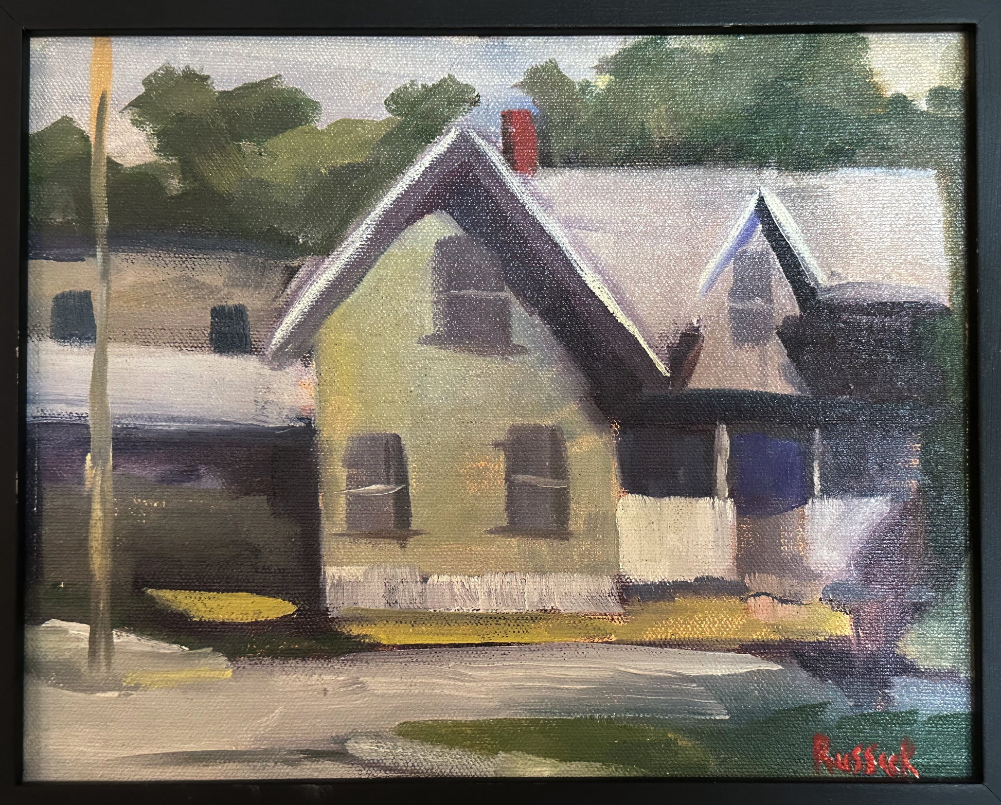 He continues to paint the urban landscape, and the Vermont and Maine pastoral scenes whenever possible. His style is a compilation of the impressionist slant, with a bit of Hopper thrown in for good measure. Ken Lives with his wife and best critic, Janice Lara in Burlington Vermont.