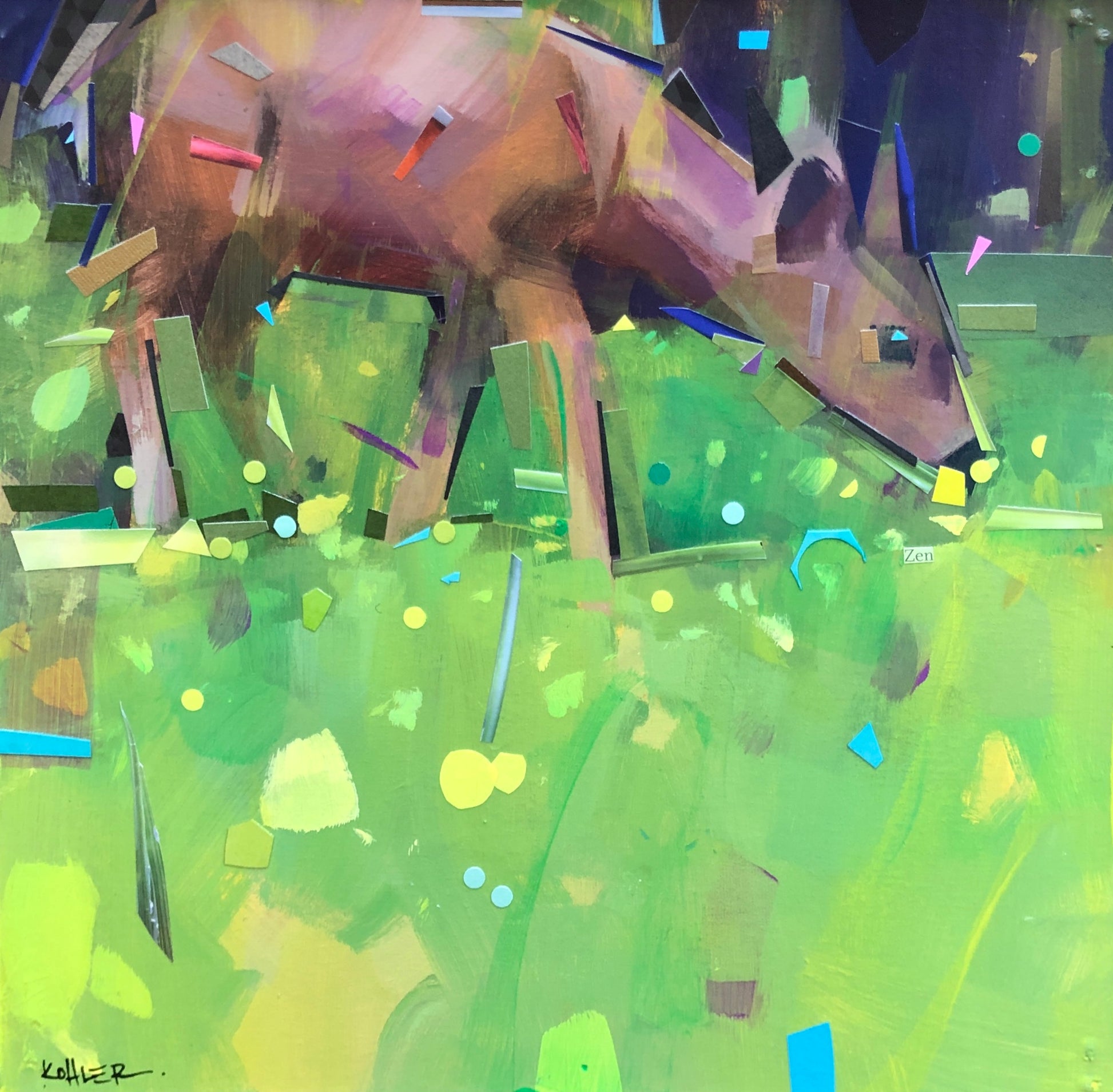 I am a painter in Skowhegan, ME where I live with my wife, Australian Shepherds, studio cats and a handful of chickens. I paint every day in my home studio, usually while stumbling over the Aussies at my heels. I received a BA in Art from the University of Maine at Augusta in 2011, with a concentration in drawing. I was briefly enrolled in the new Media program at Orono and the Architecture program at Augusta before I realized I was most comfortable getting messy in my art classes and ultimately made the switch to the fine art program.