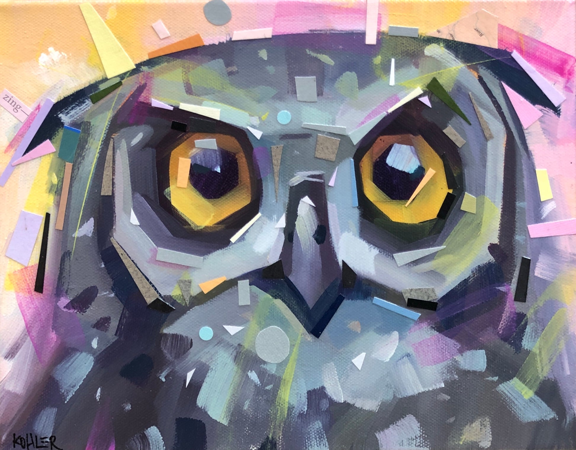 Representational painting is still the root of what I’m trying to achieve, but to me, the fun lies in trying to find ways to describe my subjects through expressive gesture and varied mark making. Recently, mixed media and collage has become a significant element to my work. Bits of colored paper, maps, album covers, posters, and found materials are collaged to the surface of my paintings, adding an extra physical presence to my work and enriching the viewing experience. Collaging has become an important process for me, forcing me to think abstractly and slowing me down a bit more than the painting process would, which yields to more interesting and thoughtful decisions. I sometimes describe it as like putting together a jigsaw puzzle, but I get to make my own pieces, and they don’t have to exactly fit. Charmingly incorrect is the result that I typically shoot for, rather than literal and precise. There comes a point where too much detail and obvious overstatement becomes detrimental to the power of a painting. Letting edges blur and being ambiguous with brushwork usually leads to more interesting results. This is something I am constantly thinking about while painting and I try to walk away from them when they are at an evocative and unpredictable state.